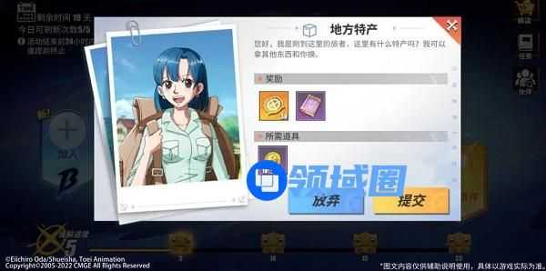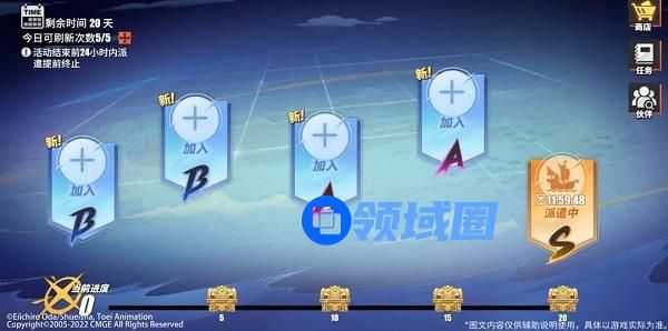 2、活动介绍:活动期间,可前往游戏内右上角-闪光的大将-赏金任务界面参与活动。消耗行动值派遣伙伴出发探险,探险完成后可获得奖励和探险进度,并有概率触发随机事件。完成随机事件可获得额外奖励。更多规则详情,详见游戏内活动介绍。