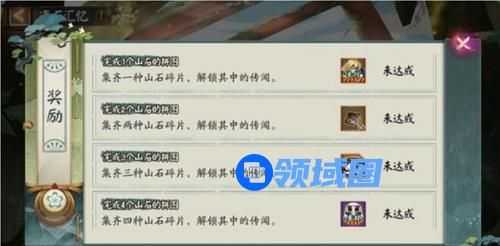 2、点击解谜,进入[ 遗石汇忆 ]界面,一共4种石头,需要把获得的石头碎片拼到石头上。