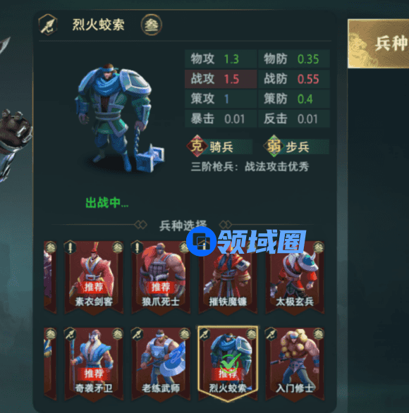 注意要点:步兵对枪兵伤害+25%,受伤害减少25%