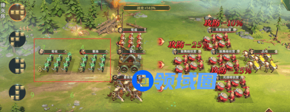 注意要点:骑兵对步兵伤害+25%,受伤害减少25%