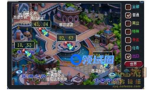 西梁女国:(134,35)、(83,62)、(31,93)、(18,51)