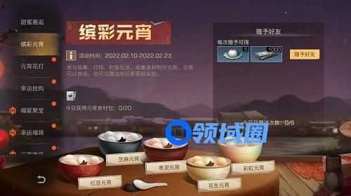 4、在活动期间,将元宵赠送给好友即可获得一份祝福礼物并增加两人的友好度,每天最多可赠送5个元宵食物。