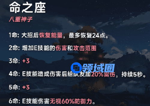 3、3命:【增伤】提升元素爆发【大密法·天狐显真】技能等级3级。