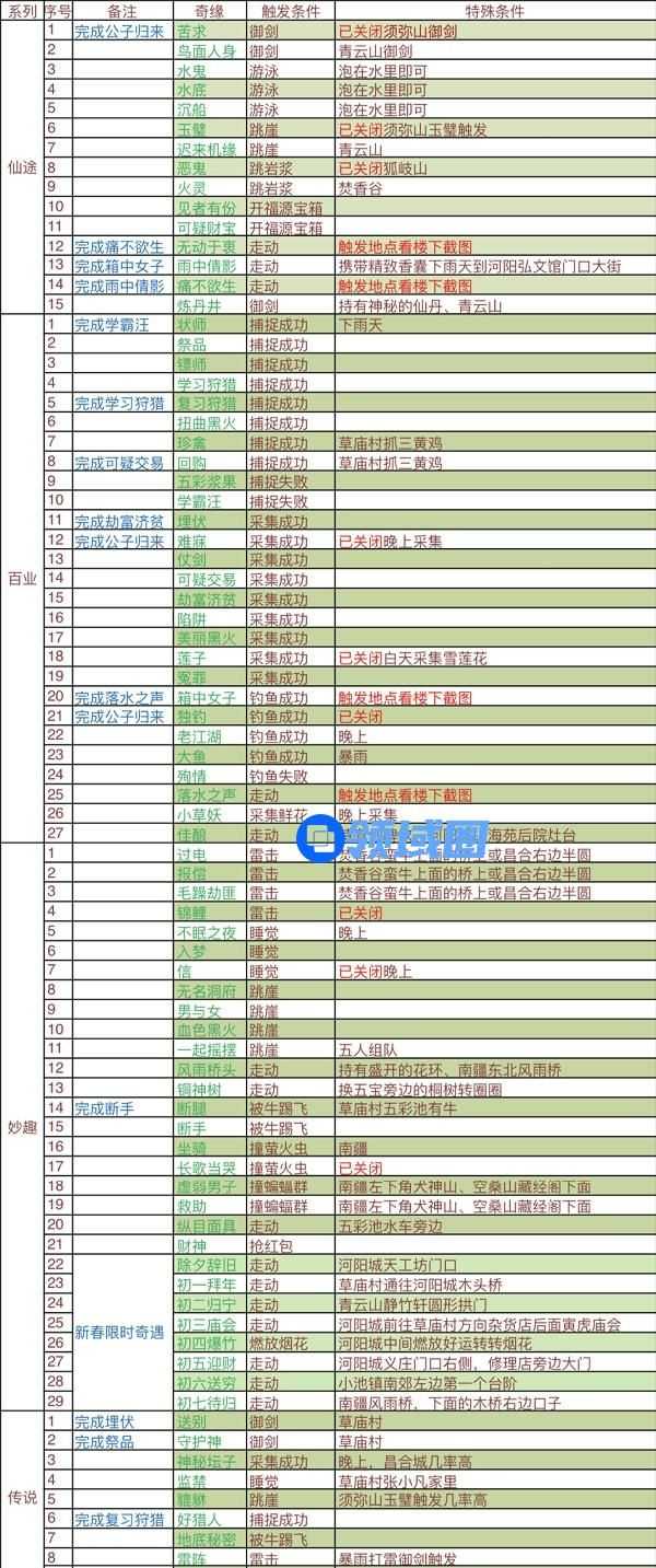 2.很多奇缘是有前置的,大家在做的时候需要留意。