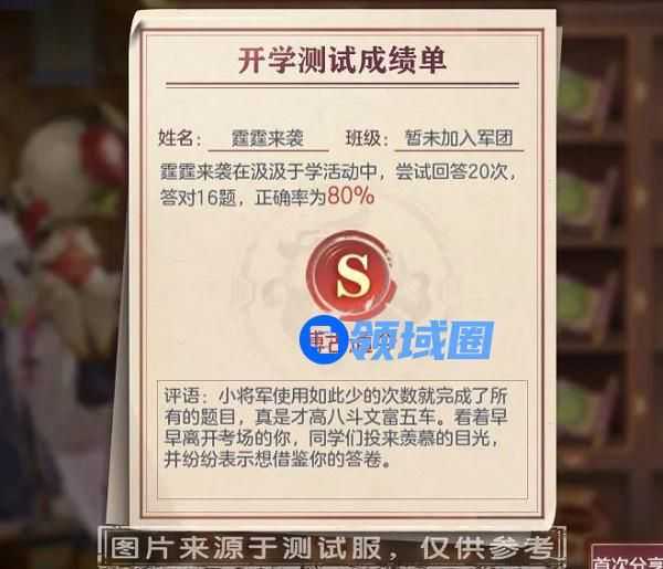 完成本次16道题的小将军,会根据小将军答对的总次数,给到小将军一份成绩单,分享成绩单可以领取额外300元宝的奖励~各位小将军来看看对知识掌握多少吧~
