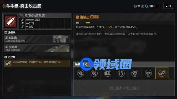 2.加点推荐:策略中期必点,冷却,对大船命中,伤害点上就行了,如果有多余的点数护甲也可以拉一拉,不过大部分人应该没有这么多斗牛的技术值,可能不够点护甲的。