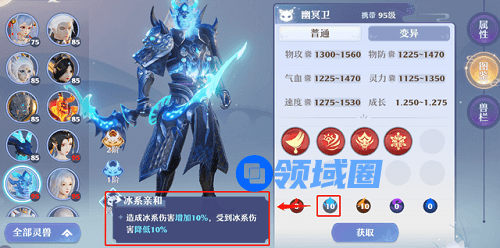 3、这里推荐各位采用“高级噬血+高级健壮+高级冰元素+高级冰系亲和”的打书方案,“高级噬血+高级健壮”可以极大的提高幽冥卫的生存空间,保证它可以站场持续输出;而“高级冰元素+高级冰系亲和”则是因为幽冥卫自带10点冰系亲和,搭配这两个技能,输出效果远超高级物爆+高级修罗。
