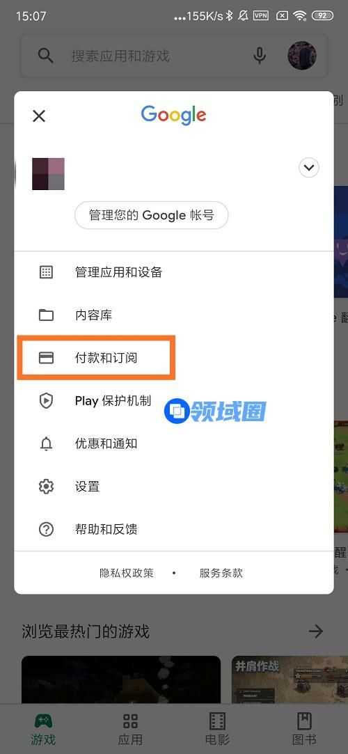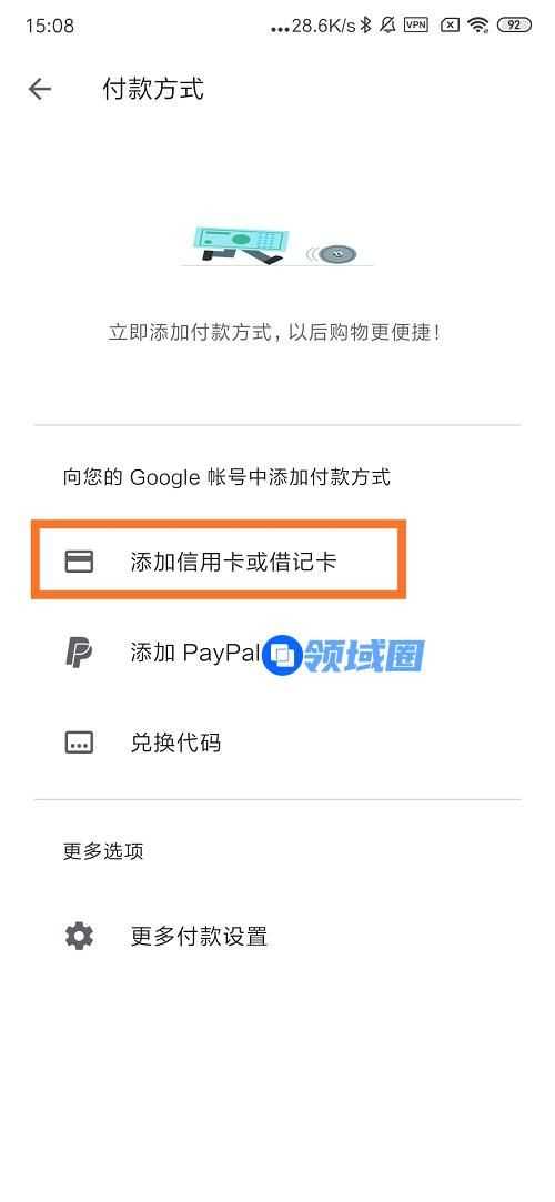 ①打开谷歌商店,点击头像,选择“付款和订阅”-“付款方式”-“添加信用卡或借记卡”。