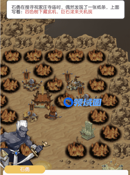 此时右下角祝家庄大门敞开,进去清理完所有的打斗点后,点击中间的寺庙,会给出最后一只箱子的线索。