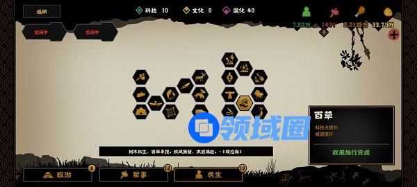 一、 前期尽可能的点军事科技,由于三皇五帝剧本有较多的中立城市,这些城市在前期只需要一次就能够拿下,而到了后期城市等级会提高,往往需要两次。因此在前期尽可能的优先多拿白城。