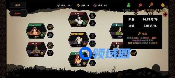 七、 三皇五帝副本只有三类兵种,整体的地形也没有太多的讲究,甚至没有关隘,因此在军事方面不需要用白起这类(例如图中白起完全没有利用到)。