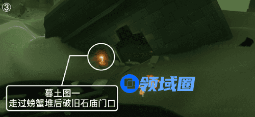 3、第三个在暮土图一,走过螃蟹堆后破旧石庙门口。