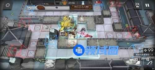 3、开局部署煌冲右侧攻击,然后部署棘刺冲左侧攻击,左右开弓,棘刺这个点可以用山来替代,效果差不多。然后高台部署夜莺冲上攻击,高台再补充点燃小绵羊冲右侧攻击,这样实际上能把两路都兼顾了。最后中路补个塞妈即可。