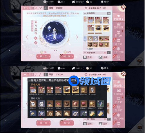 1、基础为每十连570元宝10月夕积分,抽到的物品暂时存在仓库,可将其取回或者转化为积分。