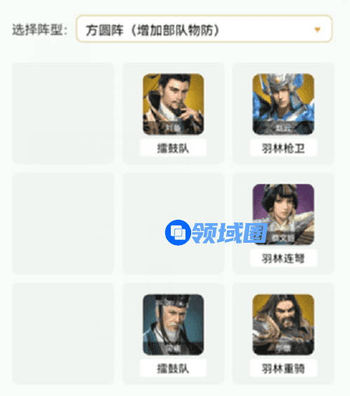 较基础的一套阵容,除刘备外,其余4名武将都是前期非常容易入手的几名武将。华雄作为主坦,赵云提供输出,简雍提供士气恢复,蔡文姬提供治疗。