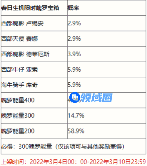 1.《英雄联盟手游》春日生机限时魄罗宝箱,将于2022年3月4日00:00正式上架商城,春日生机限时魄罗宝箱奖励抽取概率公式如下: