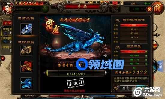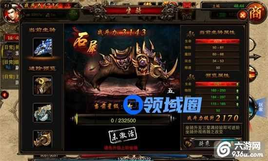 坐骑系统在角色达到50级时自动开放。点击系统功能栏的“坐骑”可以打开坐骑界面