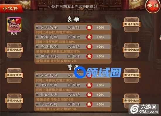 在小伙伴系统中装备武将,即可触发当前上阵武将的缘分,解决很多缘分武将因种种限制无法上阵的问题;