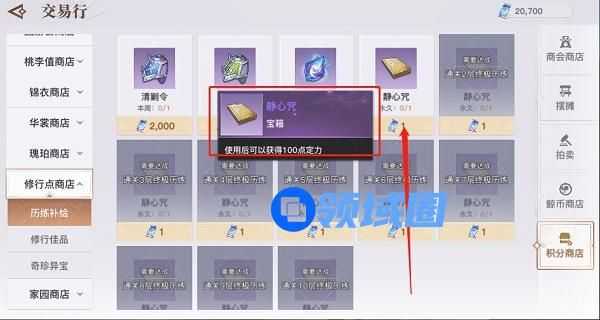 消耗定力在龙渊历练中进行探索,获取修行点再到商店兑换奖品。