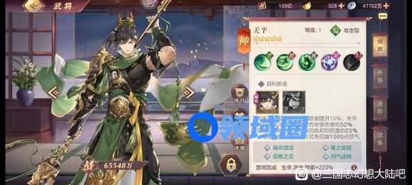 5、羁绊-其利断金:和关羽一起上阵,无视防御提升10%;关平关羽在战斗中会分担对方所受伤害的50%,且额外为对方回复自身回血和回怒量的25%,每回合最多通过此方式各回复1000点怒气。