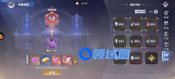 2、为方便玩家对外附魂骨进行调整,外附魂骨支持重铸功能,重铸后可返还全部养成材料以及外附魂骨本体。