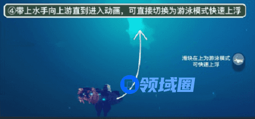 4、带上水手向上游,直到进入动画,可直接切换成游泳模式快速上浮。
