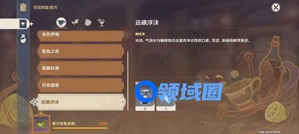 3、综上所述,这个冲击性的咖啡就是远礁浮沫,直接按照游戏宝小编给出的远礁浮沫配方制作就ok了,没什么难度哦。