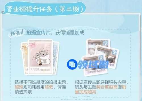 6、在第二期节目中完成任务,为奶茶店拍摄宣传片,拍得分数越高,销量加成就越好!