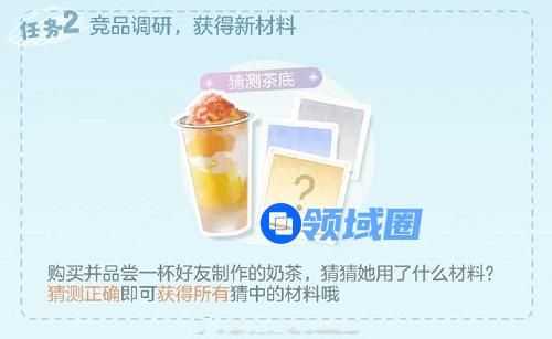 ①购买并品尝一杯好友制作的奶茶,猜猜她用了什么材料?猜测正确即可获得所有猜中材料。