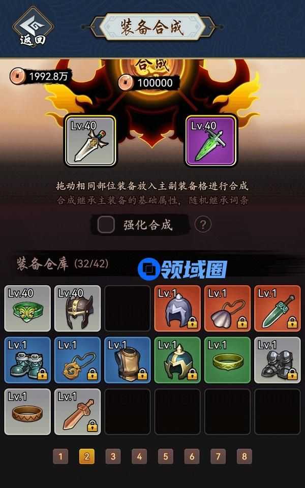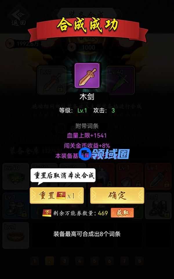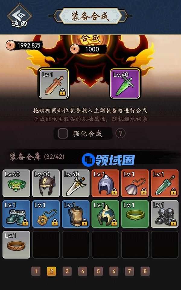 然后,我们惊奇的发现,哎,装备一换,我们能打过第15关了,可以做50的装备了,那么,我们需要重新做一把武器吗?答案是no。我们所需要做的是再做一个胚子,以这把50级的胚子为主武器,40级武器为副武器,再次进行合成,从而得到一把8词条的50级武器。