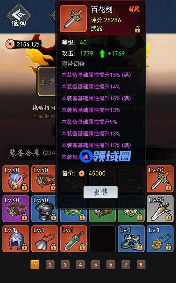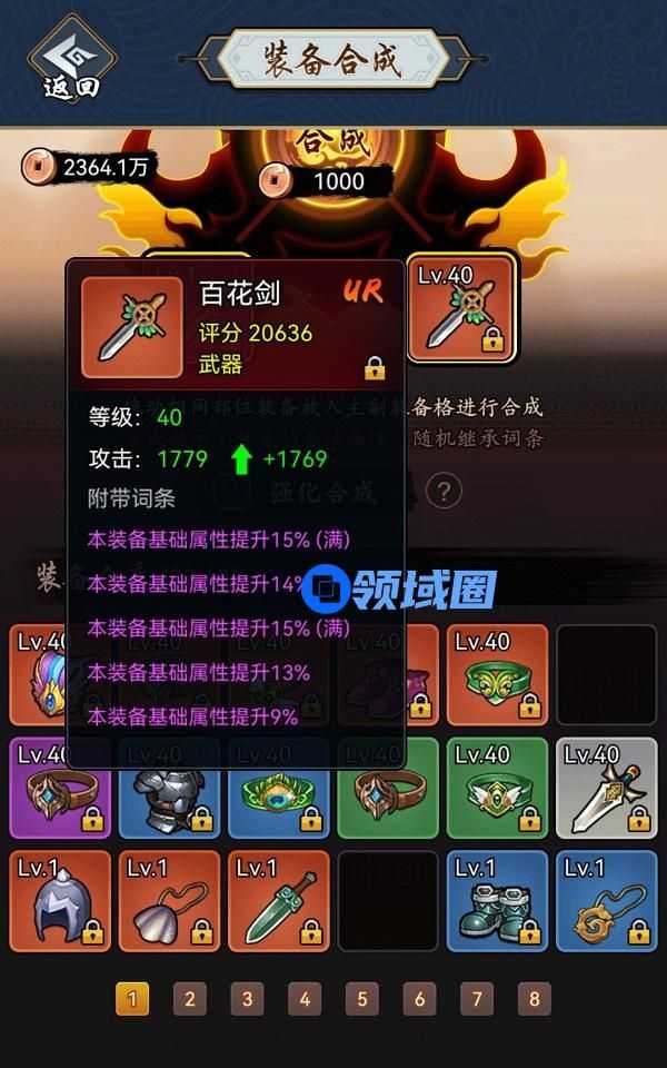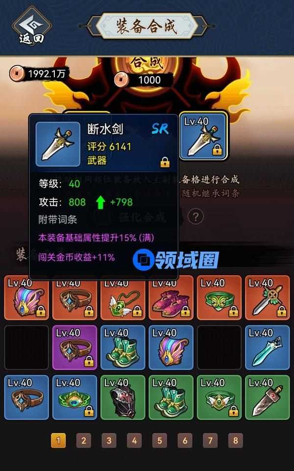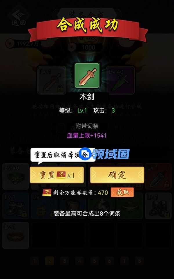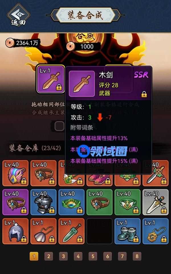 可以看到,我有一把40级的白板剑,和一把1级的白板剑,还有一把1级的橙色剑,那么,我该选取哪一个作为合成素材呢?