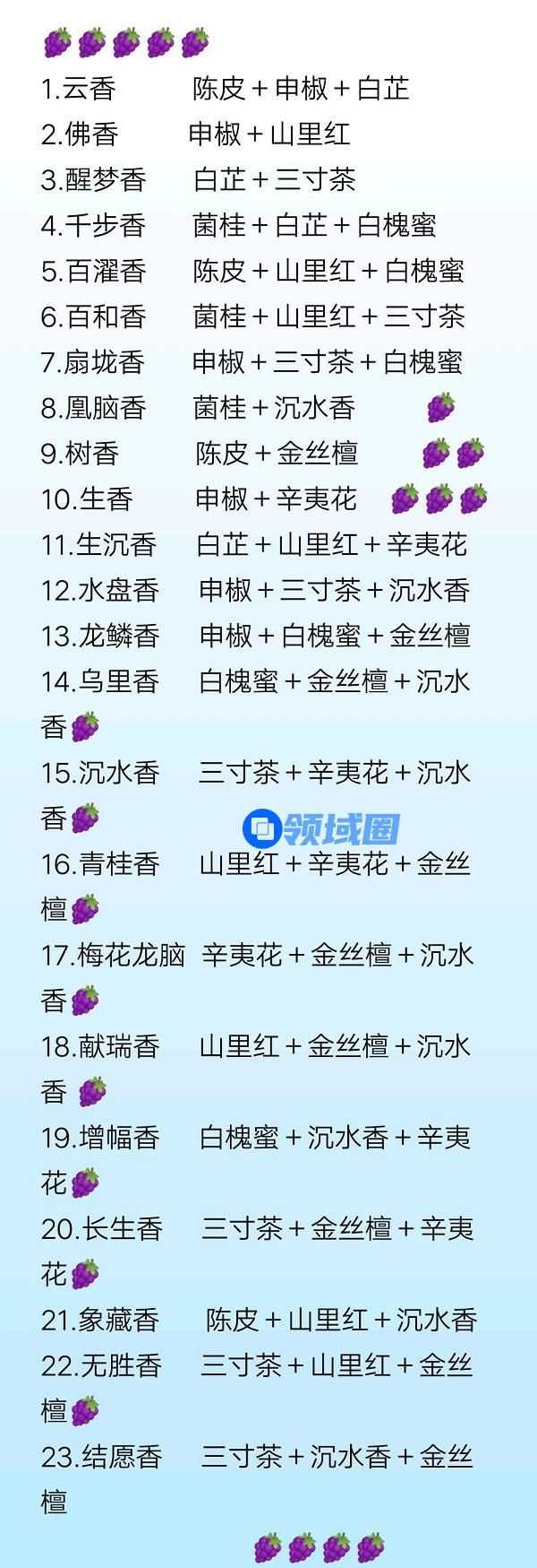 盛世芳华香道求索香谱配方大全攻略2022最新