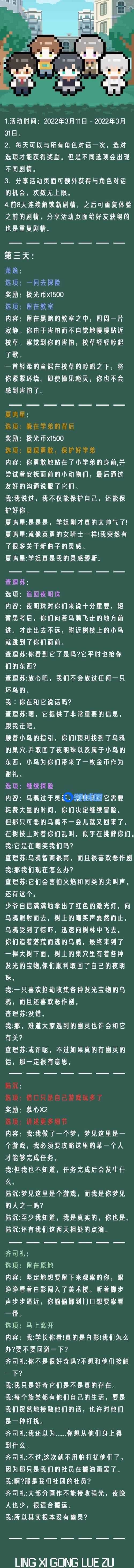 光与夜之恋像素情缘第三天怎么选?光与夜之恋像素情缘第三天需要和npc们进行对话,选对后才能获得奖励,游戏宝小编带来光与夜之恋像素情缘第三天攻略,一起来看看吧。