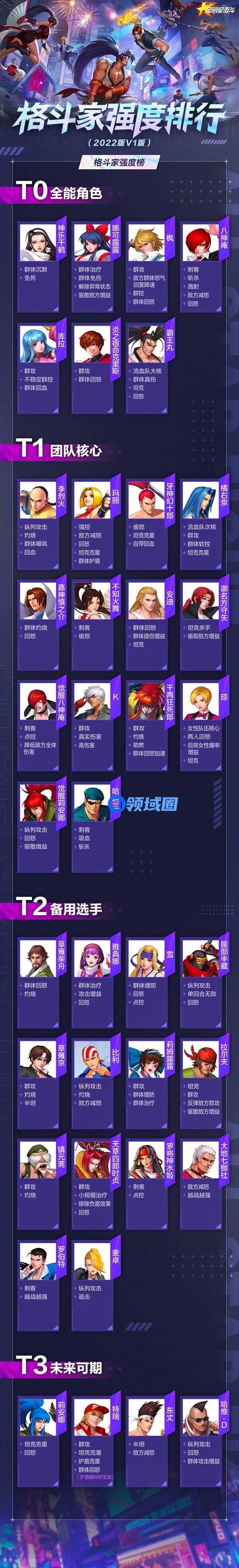 1、节奏榜分为了T0、T1、T2、T3四个强度,玩家可以参考上图的排名来选择角色进行培养。