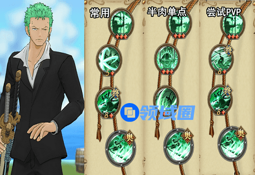 2、如果你想刷剧情充当一下前排,那就用半肉单点的那一套,让新索隆站前面刷刷护盾。最后如果想尝试一下PVP,那就用第三套,带上两个终结技。