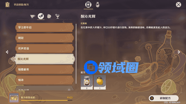 原神酸沁光辉是曲生酌微梦饮品之一,玩家需要根据配方来研制,那么原神酸沁光辉配方是什么?原神酸沁光辉配方怎么研制?下面和游戏宝小编一起去了解一下吧。