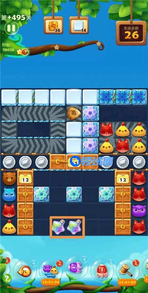 2、用赠送的小锤砸一只螺旋管,双精力瓶发亮,互换后清屏消除。