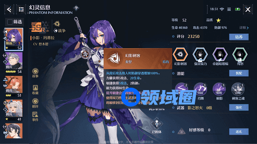 1、双刀推荐幻灵为小影,也可选择其他刺客型幻灵。