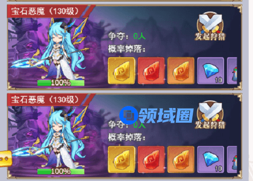 3、参与公会猎魔,根据造成的伤害量进行排名,魔物完成击杀后能够获取彩钻,同时还有个人猎魔积分以及相应的猎魔宝箱都能够获得彩钻,并且每周根据公会的猎魔情况会有相应的公会排名,同样也有彩钻奖励。