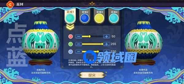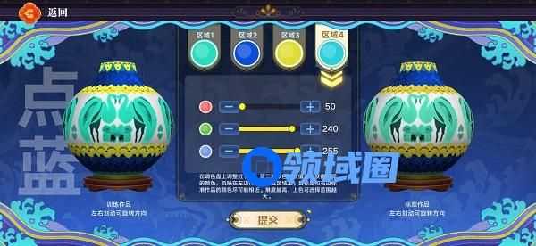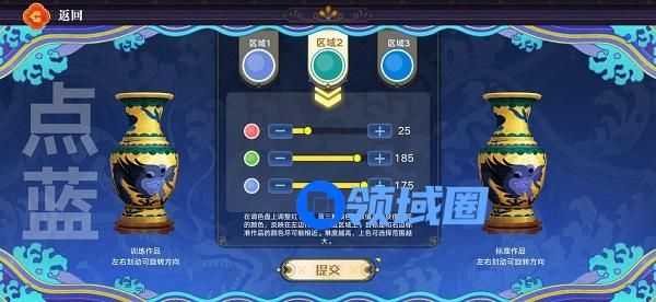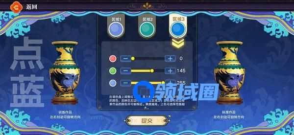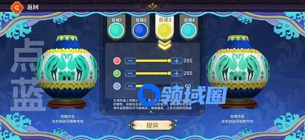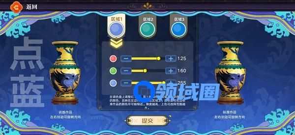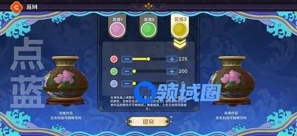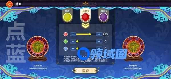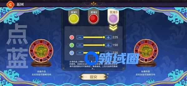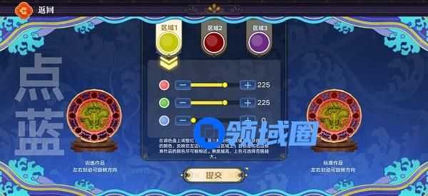 2、每个区域都要对应一块图案,要判断区域对应的哪个图案,可以将红、绿、蓝分别直接拖满进度条。然后边拖边看左边的样品,哪个图案变色了,就说明这个图案对应这个区域。
