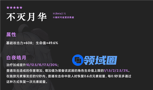 不灭月华的属性是增加生命值百分比,和攻击力,满级是49.6%的生命值。