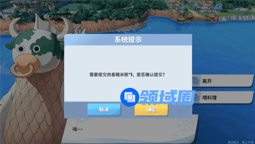 肉香糯米粽在船舱的厨房制作,完成了之前地图的探索,应该很容易就能制作了,做好了喂它吃上个新鲜的肉粽就完成任务。