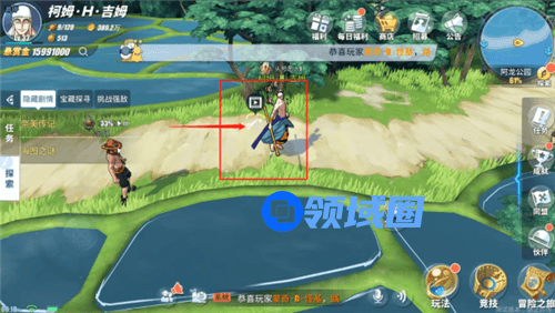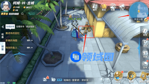 二话不说先来到阿龙公园参观参观曾经大战后的痕迹,公园正中央自带一键播放曾经索隆在阿龙公园发生的事,还让你亲身体会索大是如何爆锤鱼人的。看也看了,操作也操作完了,同时任务也完成了。