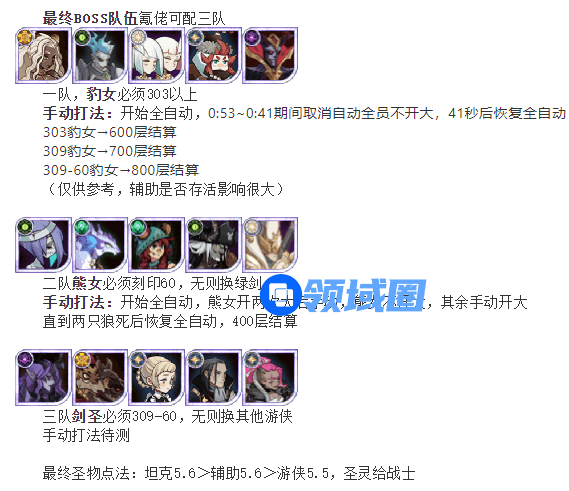 冲排名的公会可以落实一下图中细节,不冲排名的三路平均安排人数,直接从魔术师处突破到最终BOSS。