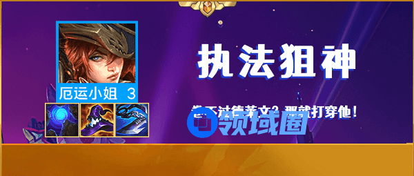 德莱文作为一个后排输出位置,即便大成的刺客英雄也不能说是能够在开局就切死德莱文,更不用说是带了饮血的德莱文。一但没有人针对,那等到德莱文双斧飞起来后你就只能看着自己输了。但是这套“执法狙神”可以做到完美克制德莱文,狙神羁绊的随距离提升伤害可以多点位打出高爆发伤害可以在开局就瞬间就打出成吨伤害融化脆皮或者打残前排再搭配4执法官羁绊的拘留效果可以拘留敌方最肉和输出最高的英雄4秒,前排顶不住,后排输出位打不出伤害。就可以做到克制德莱文体系阵容。