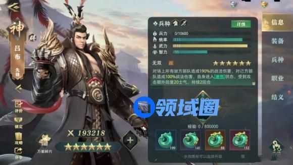 2、配阵思路:抛开对友军的伤害,单论群体战法输出伤害来讲,吕布绝对是最高的。那么我们便围绕吕布的这一长处,搭配出该阵容。刘备、曹操、蒋琬、小乔均为士气将,由他们在前面为吕布积累士气增加伤害,吕布在最后一位出手,以达到一出手便毁天灭地的效果。