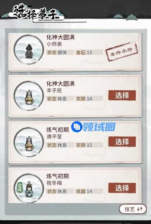 2.选择想要驱逐的弟子(该弟子技艺属性值需达到12及以上,邀请和俘虏获得的弟子无法撰写)