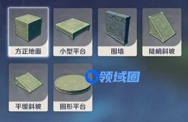 均用于搭建地形结构,攀爬/放置贴地物件,其中围墙不可攀爬