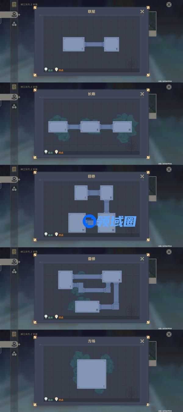 ※五种环境分别为【联屋】【长廊】【回巷】【叠楼】【方场】