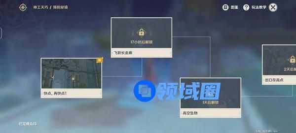 挑战冒险家协会已经拟想完成的五个拟想秘境。需要在限定时间内抵达终点,并在途中获取尽可能多的「冒险币」。在前一个拟想秘境完成后,下一个拟想秘境才会解锁。